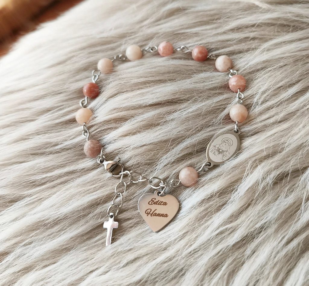 Narukvice, privjesci i klasične molitvene desetice s poludragim kamenjem, brušenim kristalićima i klasičnim perlicama. Izrada po narudžbi, boje, detalji, medaljoni i ostalo po želji. Usluga laserskog graviranja.