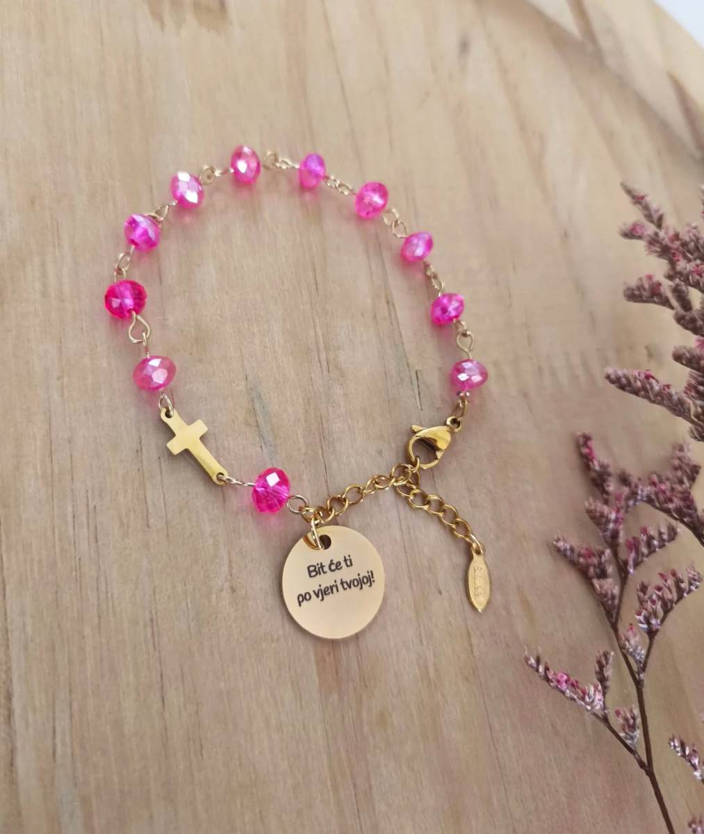 Narukvice, privjesci i klasične molitvene desetice s poludragim kamenjem, brušenim kristalićima i klasičnim perlicama. Izrada po narudžbi, boje, detalji, medaljoni i ostalo po želji. Usluga laserskog graviranja.